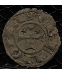 Bergamo, Federico II Comune: Denaro Imperiale. D Busto Federico II REdificio con facciata triangolare. Moneta di sensazionale qualità, mattoni degli archi ancora visibili, modulo e patina ottimi. Rarità: R2 Conservazione: BB/SPL Catalogo Biaggi: 353
