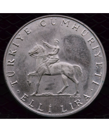 Nazione: Turchia Anno: 1972 Descrizione: 50 Lire "Entrata a Smirne di Ataturk" moneta in argento 830% Peso: 19,78g Conservazione: FDC Catalogo World Coins: 901