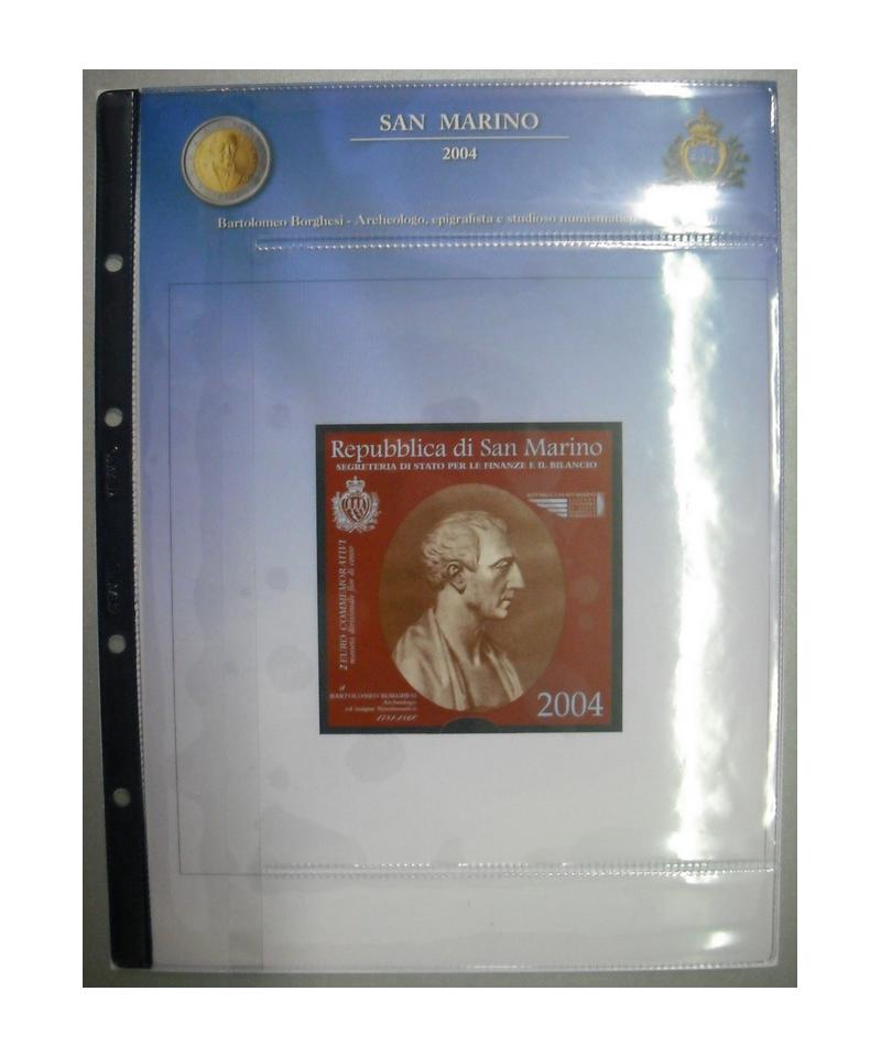 Fogli per contenere le monete da 2 Euro Commemorative emesse in Blister nel 2004 da San Marino.