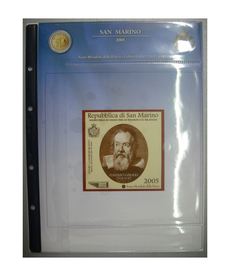 Fogli per contenere le monete da 2 Euro Commemorative emesse in Blister nel 2005 da San Marino.