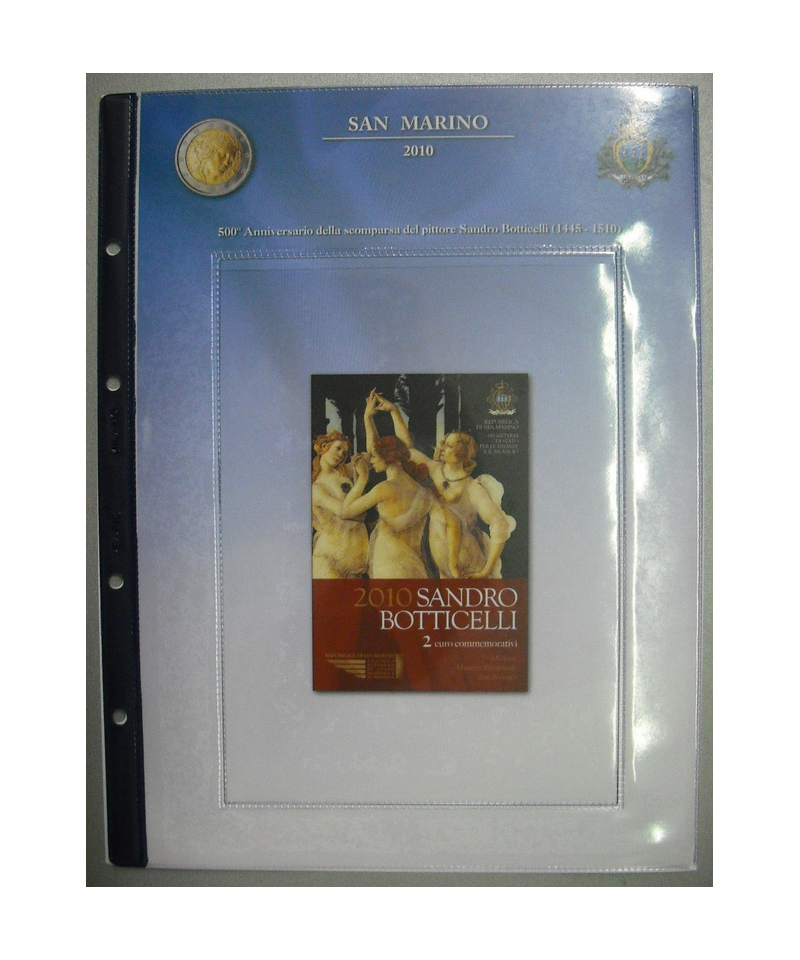 Fogli per contenere le monete da 2 Euro Commemorative emesse in Blister nel 2010 da San Marino.