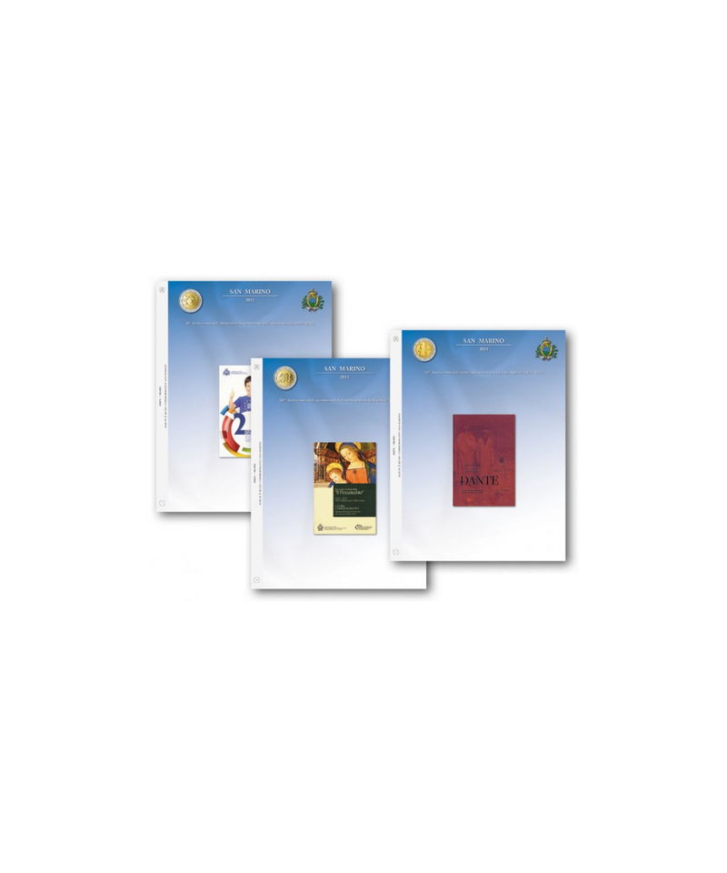 Fogli per contenere le monete da 2 Euro Commemorative emesse in Blister nel 2011 da San Marino.