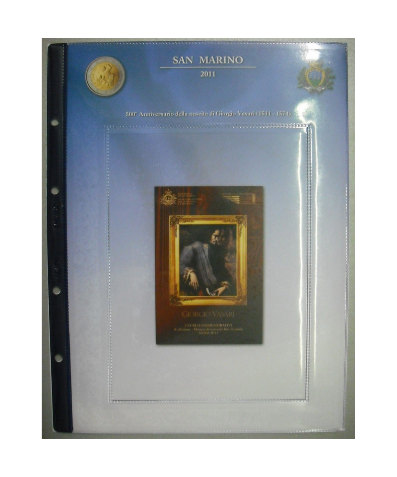 Fogli per contenere le monete da 2 Euro Commemorative emesse in Blister nel 2011 da San Marino.