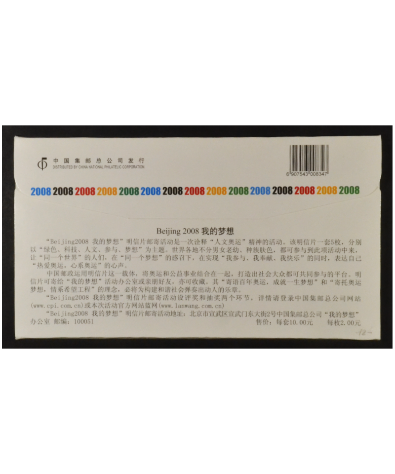 China: Pechino 2007, 'One World One Dream' 5 cartoline