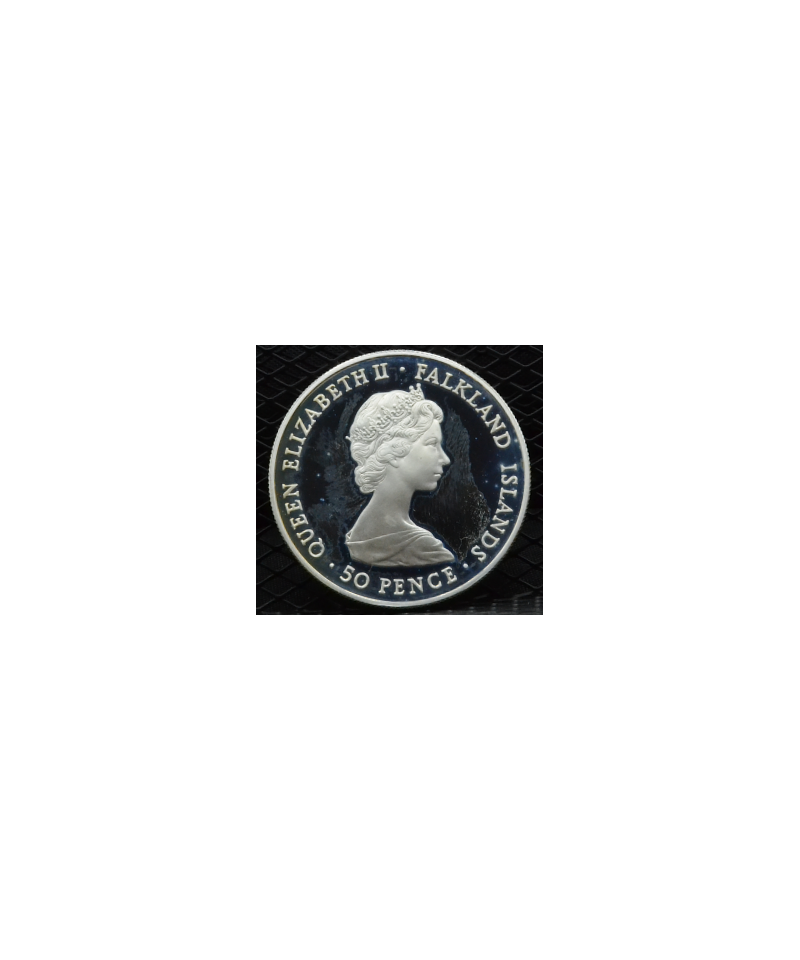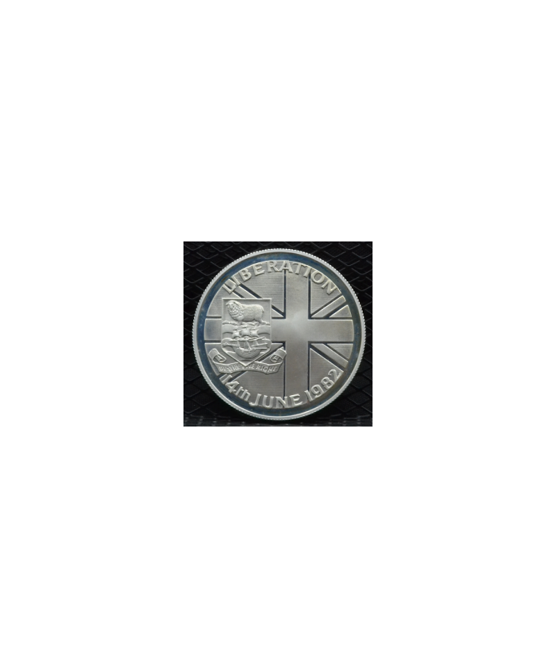 Descrizione: 50 Pence "Liberazione dall'Argentina" moneta PROOF in argento 925%.