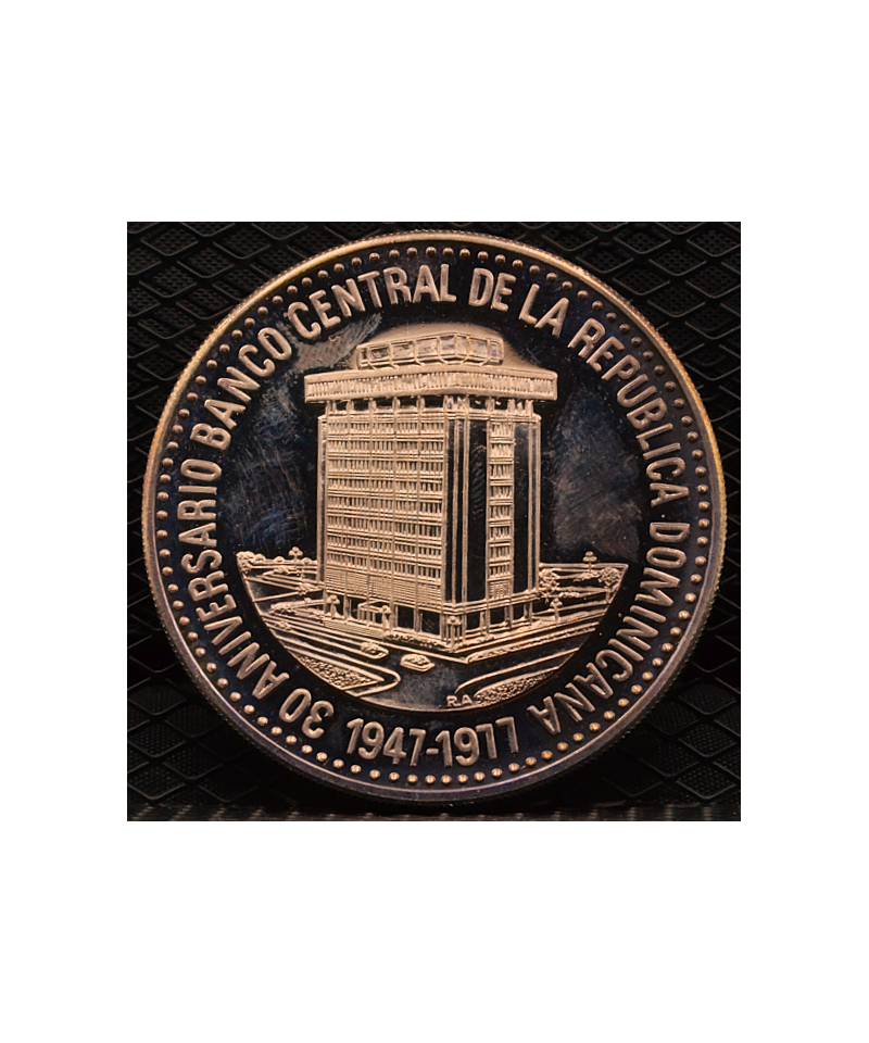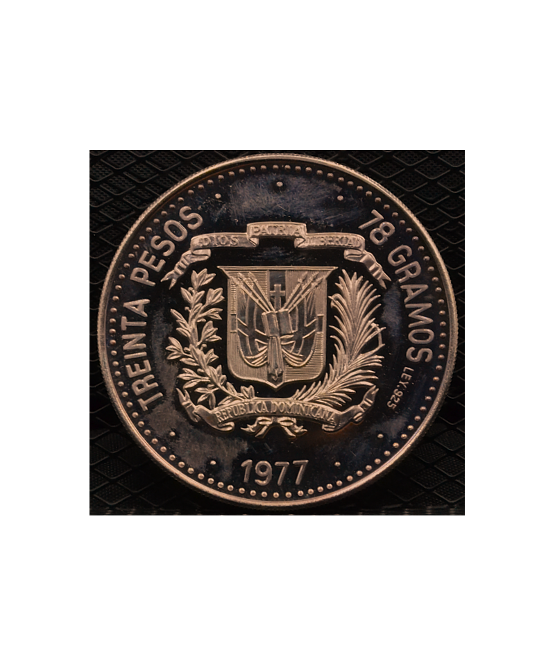 Repubblica Dominicana: 30 pesos 1977 "30° banca centrale" FDC