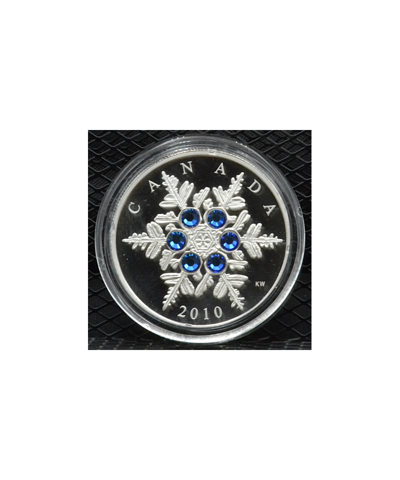Canada: Oncia / 20$ Crystal Snowflake (Blue), moneta PROOF in argento 999%, in confezione originale.
