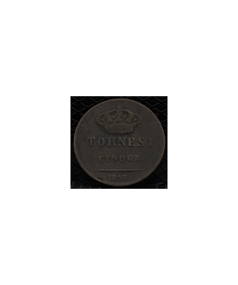 Regno 2 Sicilie-Ferdinando II (1830/59): 5 Tornesi 1853. Cifra 3 della data su 1