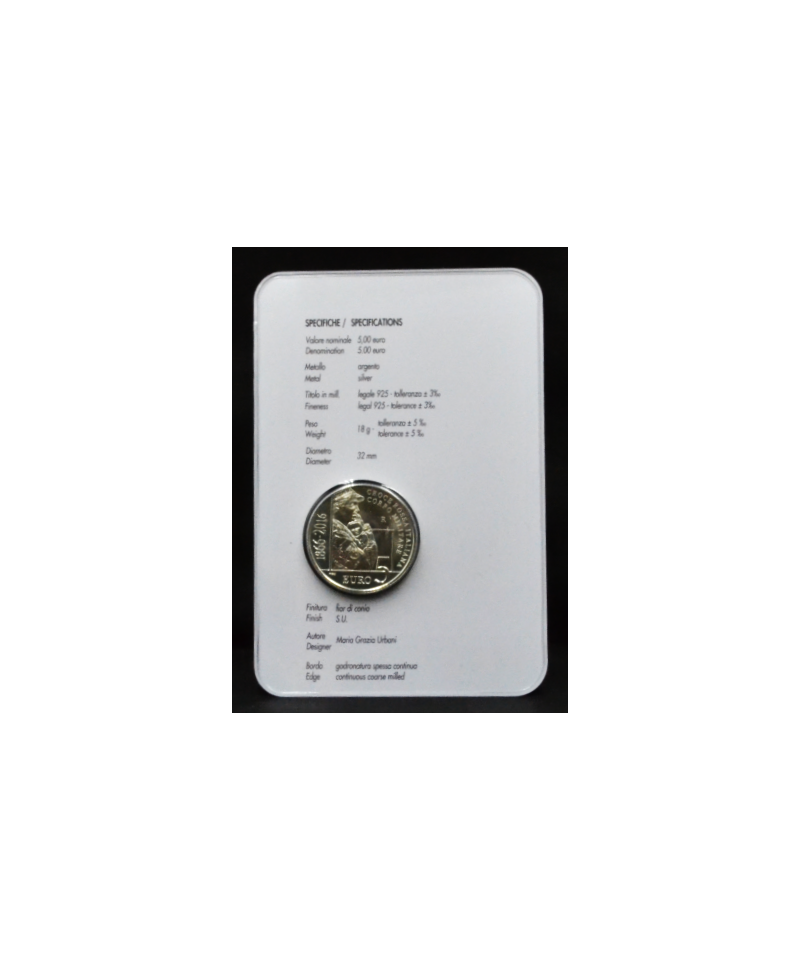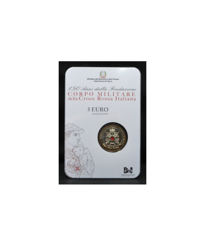 Italia: 5€ 150° anniversario della nascita del Corpo Militare della Croce Rossa FDC in confezione