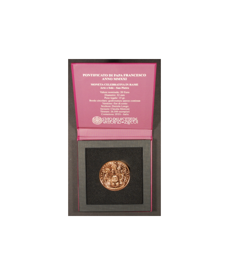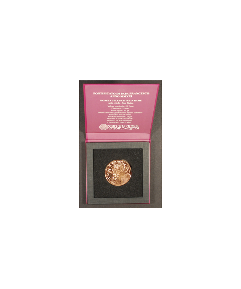 Vaticano: 2021 20€ in rame 'Arte e fede - San Pietro' in cofanetto